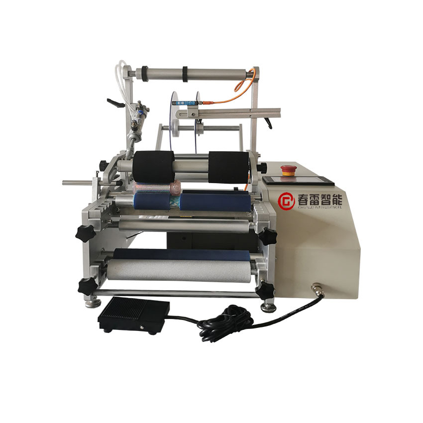 Полуавтоматска машина за етикетирање на тркалезни шишиња (вклучувајќи екран на екранот) е полуавтоматска машина за етикетирање, погодна за етикетирање на различни спецификации на цилиндрични предмети, етикетирање со мали конусни тркалезни шишиња, како што се ксилитол, козметички тркалезни шишиња, шишиња за вино итн. Изборна лента печатач и инк-џет печатач, етикетирање и печатење на бројот на производната серија и други информации во исто време, ги намалуваат процедурите за пакување и ја подобруваат ефикасноста на производството.